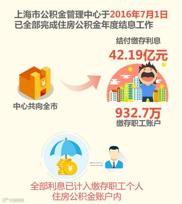 上海市公积金管理中心于2016年7月1日已全部完成住房公积金年度结息工作,共向全市932.7万缴存职工账户结付缴存利息42.19亿元。本年度结息是根据中国人民银行、国家住房城乡建设部、国家财政部《关于完善职工住房公积金账户存款利率形成机制的通知》(银发【2016】43号),将职工住房公积金账户存款利率由原来执行活期和三个月存款基准利率,调整为统一按一年期定期存款基准利率执行,即按年利率1.5%结付缴存利息,现全部利息已准确、足额计入缴存职工个人住房公积金账户内。