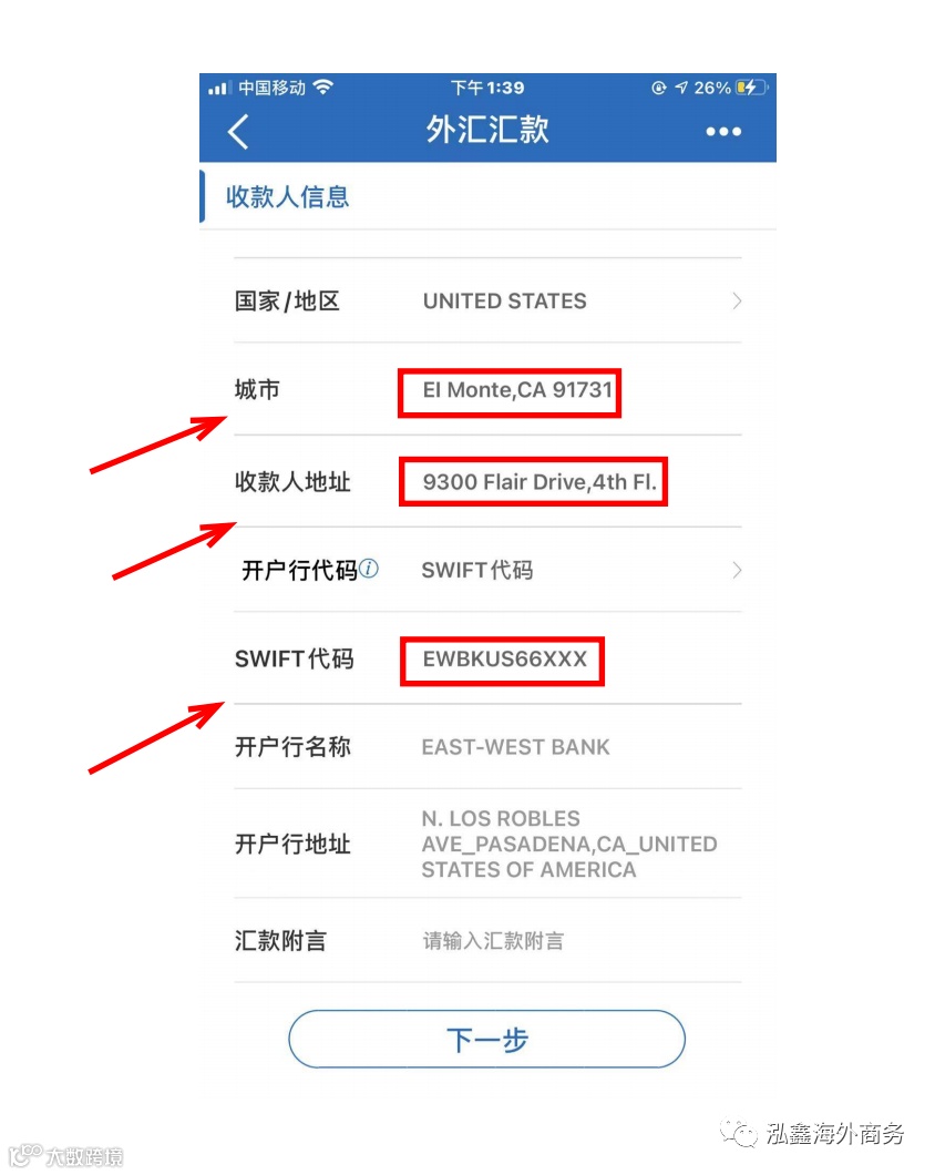 一、中国建设银行电汇美国华美个人户