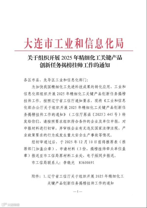 附件关于组织开展2025年精细化工关键产品创新任务揭榜挂帅工作的通知.pdf