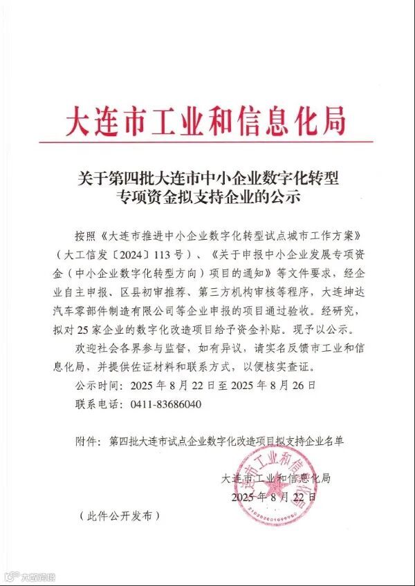 关于第四批大连市中小企业数字化转型专项资金拟支持企业的公示