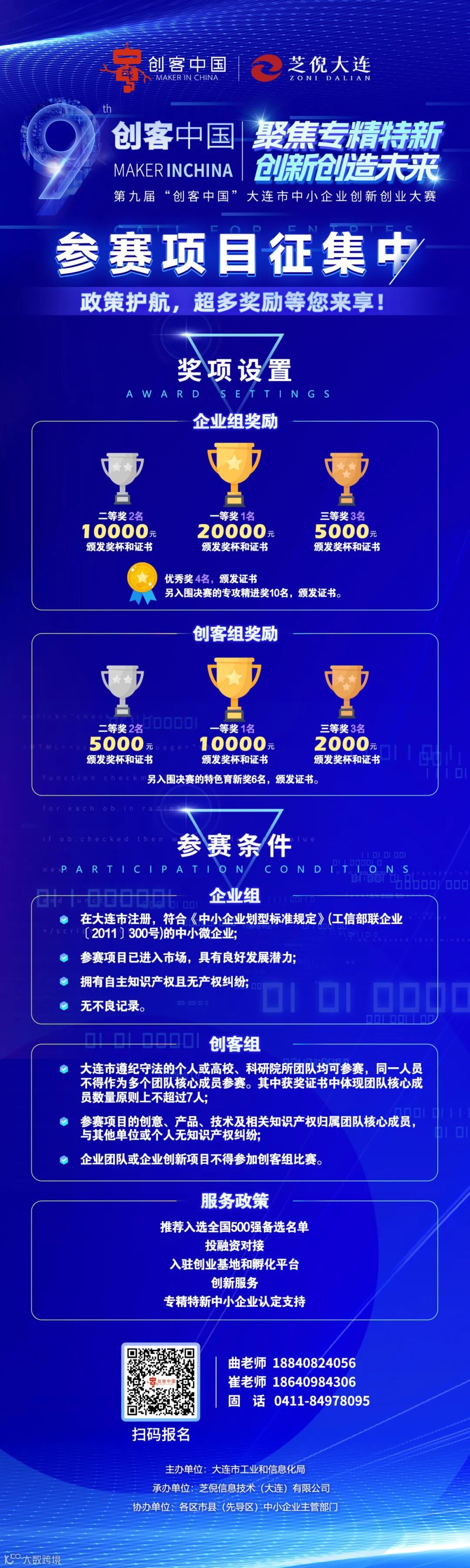 一竹新闻资讯 || 第九届“创客中国”大连市中小企业创新创业大赛参赛项目征集中