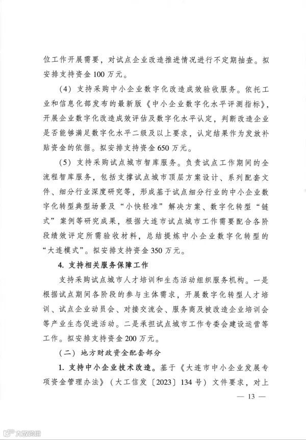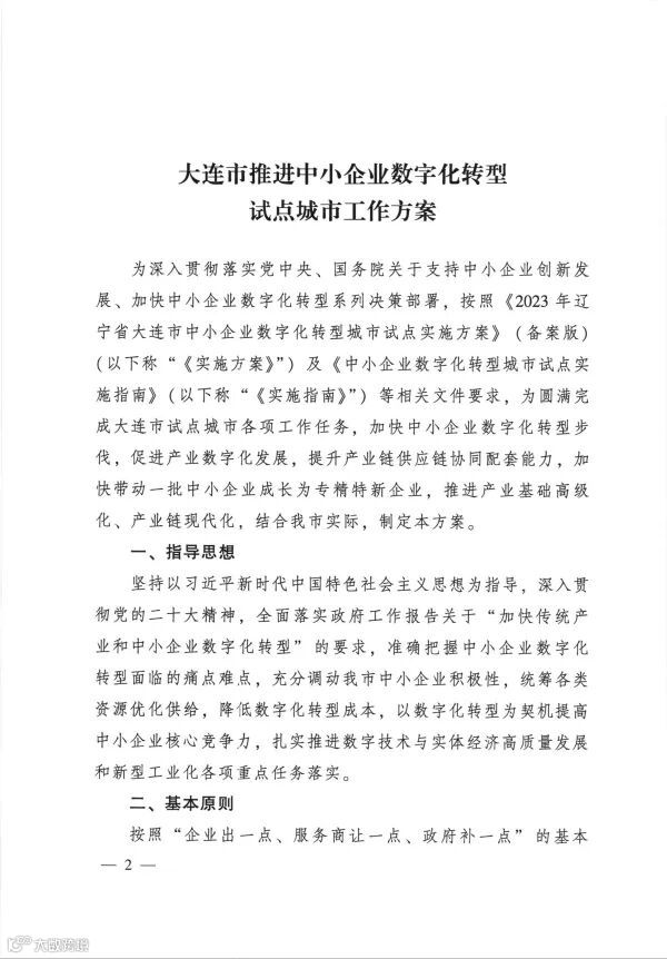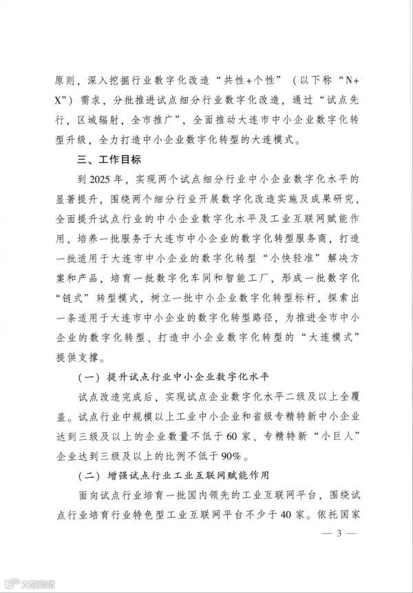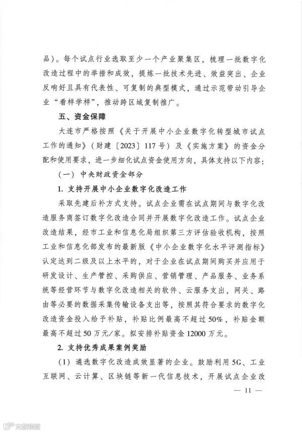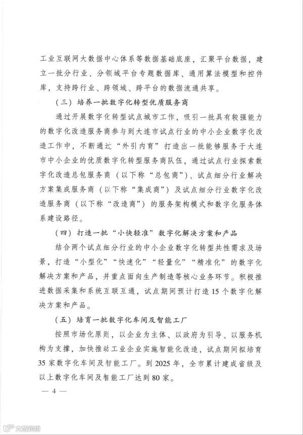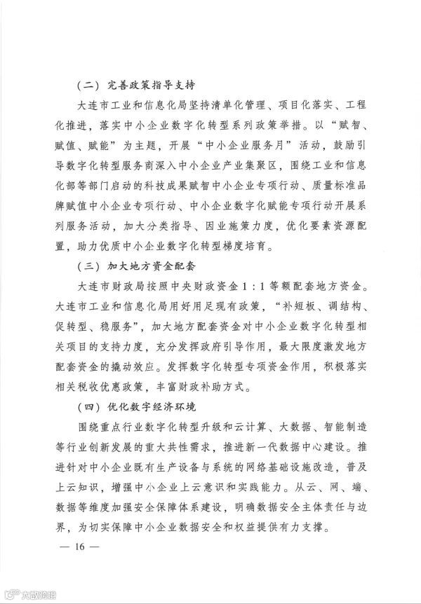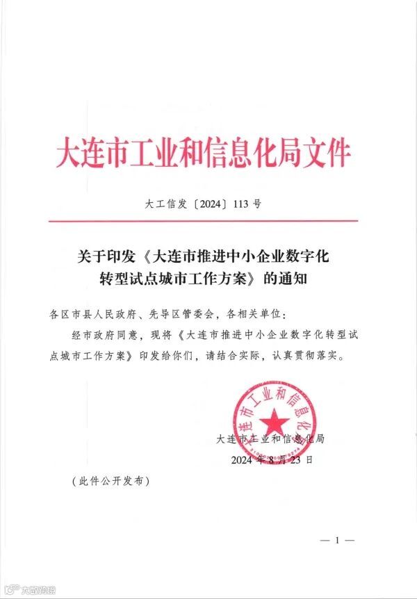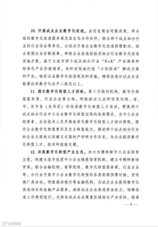 关于印发《大连市推进中小企业数字化转型试点城市工作方案》的通知