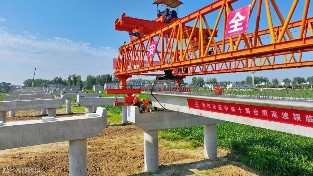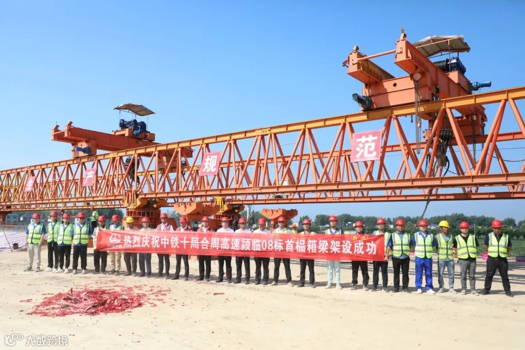 合周高速颍临段8标全长15.864公里,横跨临泉县宋集镇、长官镇、迎仙镇、韦寨镇、田桥街道,设计标准为双向四车道一级公路,整体式路基,路基宽度27米,设计时速120公里。为确保首榀箱梁的成功架设,参建项目部精心部署、周密安排,充分整合各类资源,制定详细可行的架设方案、安全措施及应急预案,严格履行架桥机验收手续,严格按照施工管理要求,配足施工生产资源,规范作业程序,经过1个小时的施工,首榀箱梁成功架设。