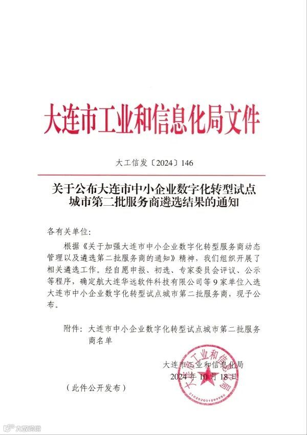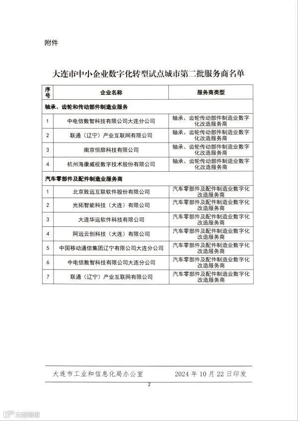 一竹新闻资讯 || 关于公布大连市中小企业数字化转型试点城市第二批服务商遴选结果的通知