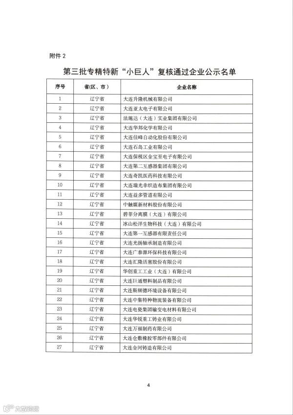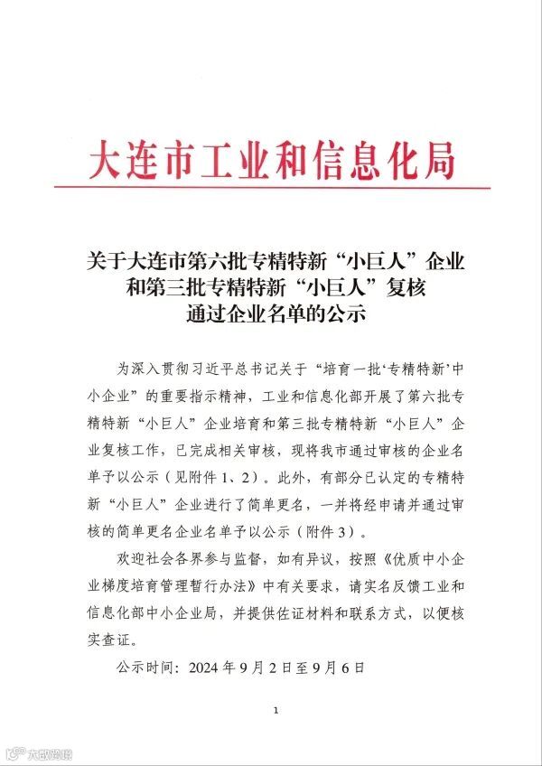 一竹新闻资讯 || 关于大连市第六批专精特新“小巨人”企业和第三批专精特新“小巨人”复核通过企业名单的公示