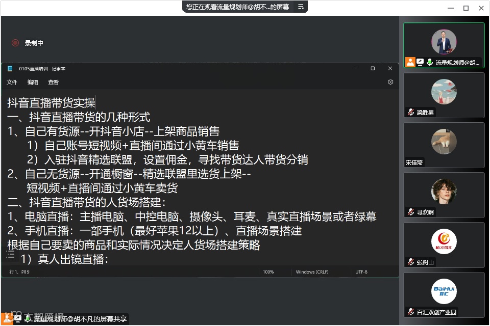 数字化和信息化条件下,直播电商发展势不可挡,为了企业能够抓住机遇,直面挑战。大连一竹文化传媒有限公司于1月5日下午6点开展“零基础直播带货方法”。本次培训以腾讯会议的方式进行,抖易新电商创始人胡双义担任此次培训导师。