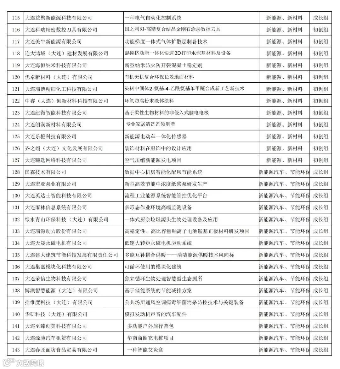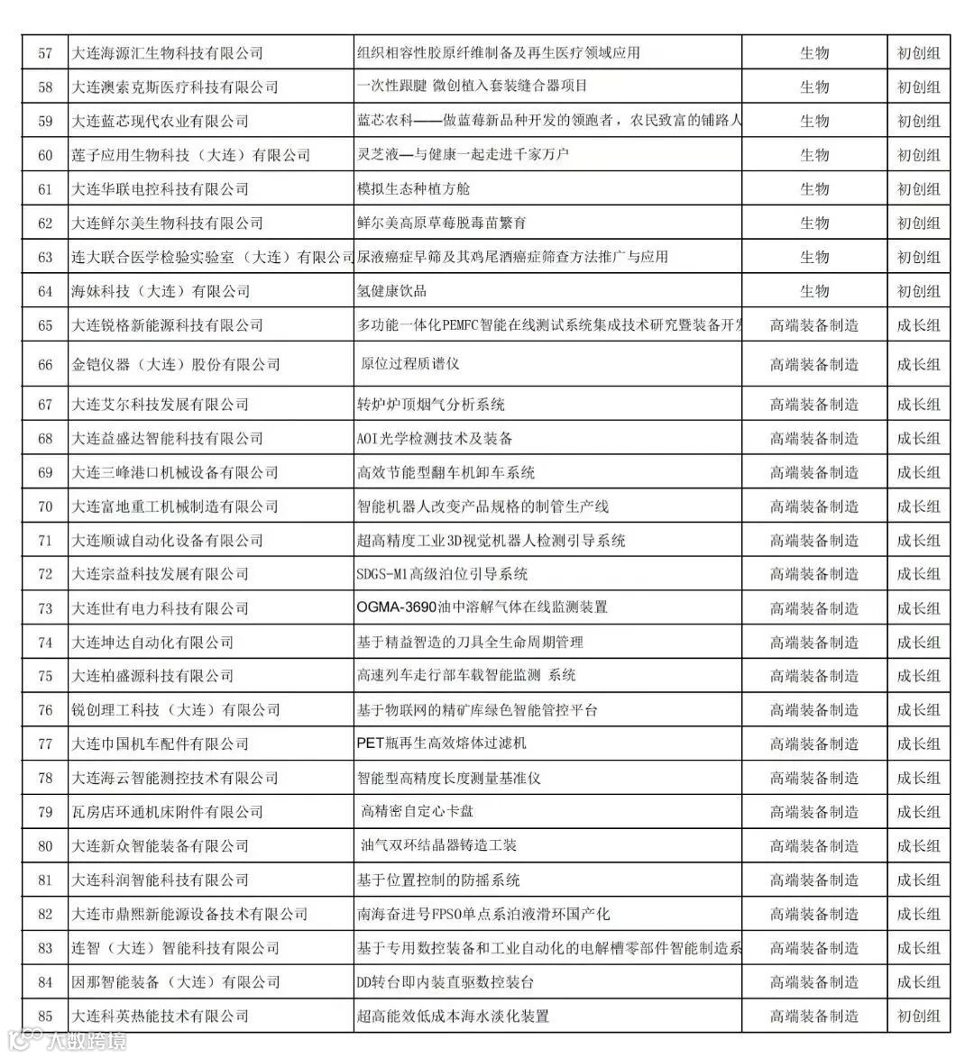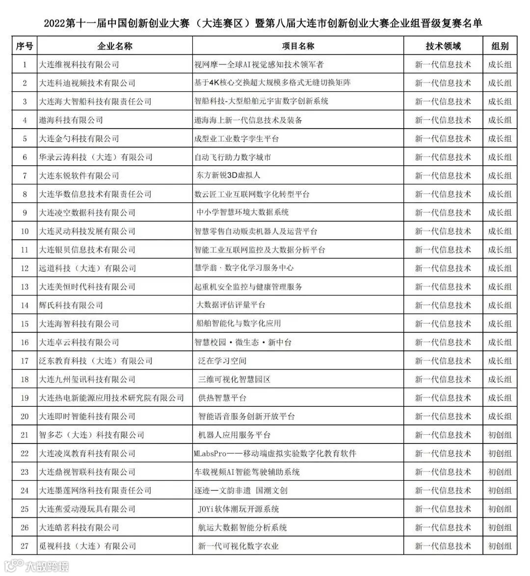 附件1:大连市创新创业大赛晋级复赛企业名单