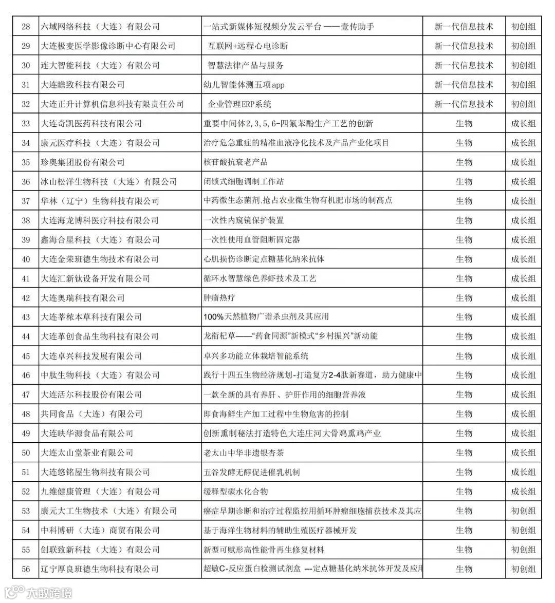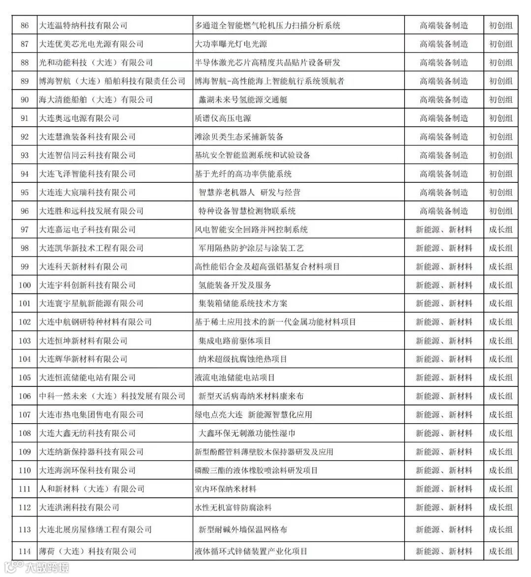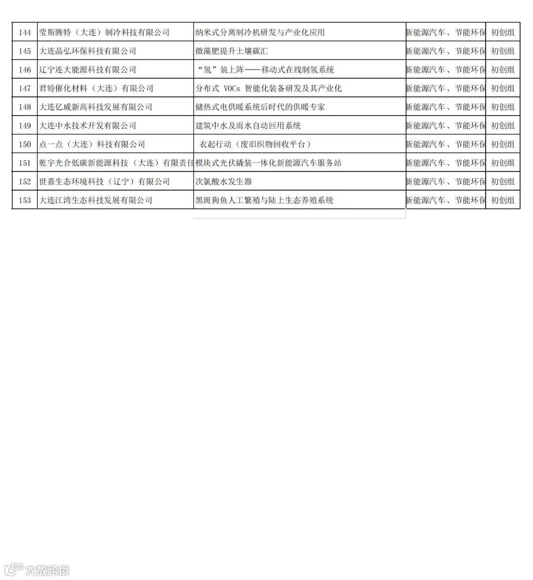 附件1:大连市创新创业大赛晋级复赛企业名单