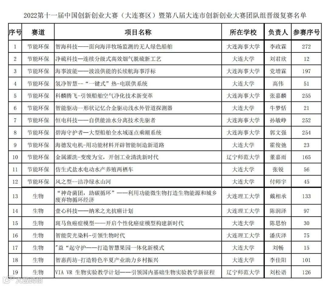 附件2:大连市创新创业大赛晋级复赛团队名单