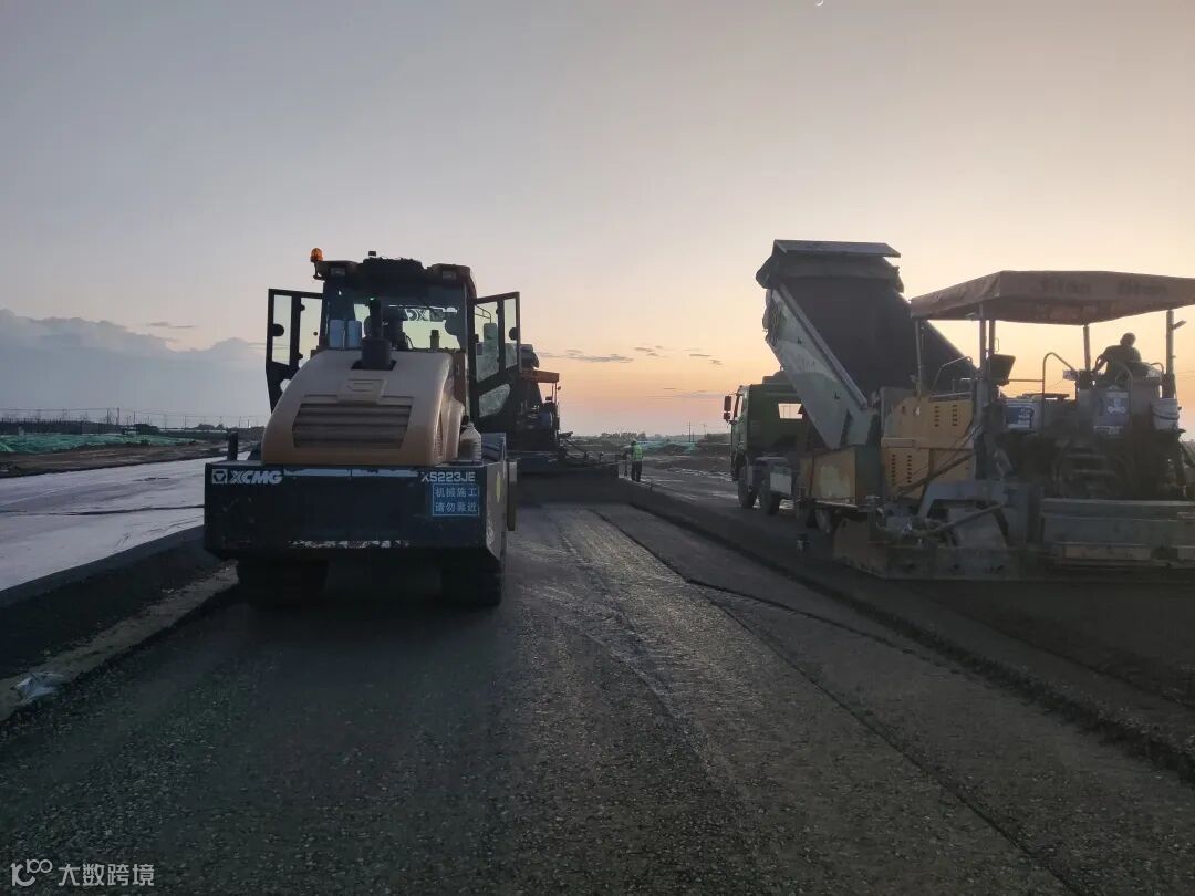 远处的火烧云之下,NV项目抓住傍晚的时光,在稍稍散去的暑气中继续吹响大干号角。(拍摄:李斌)