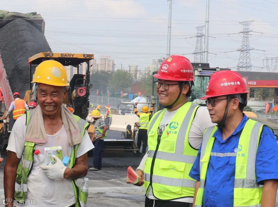 金寨路3标为工人发放防暑降温用品,为炎炎夏日里的工地送去一丝清凉。(拍摄:刘忠)