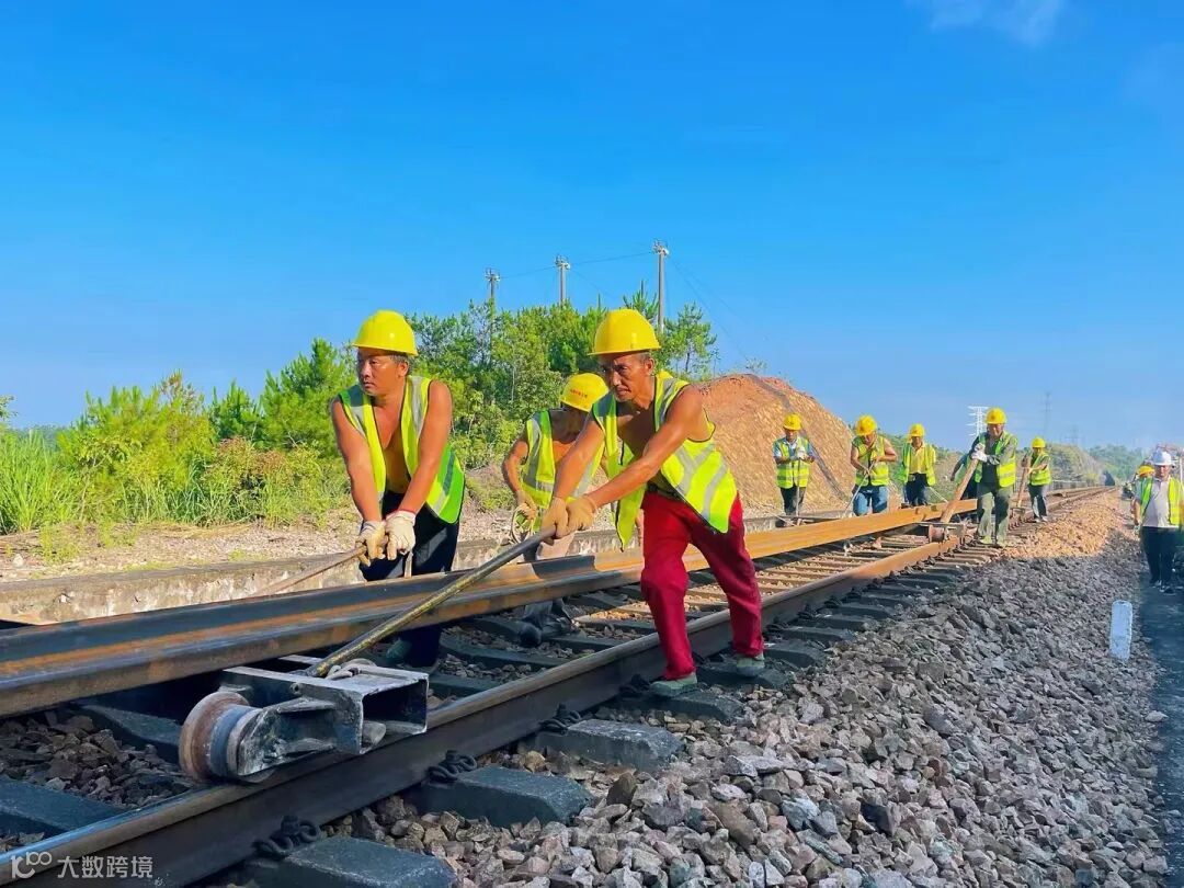 天气炎热,松棚铁路营业线站改施工的工人们大干热潮更加势不可挡。(拍摄:杨鹏)