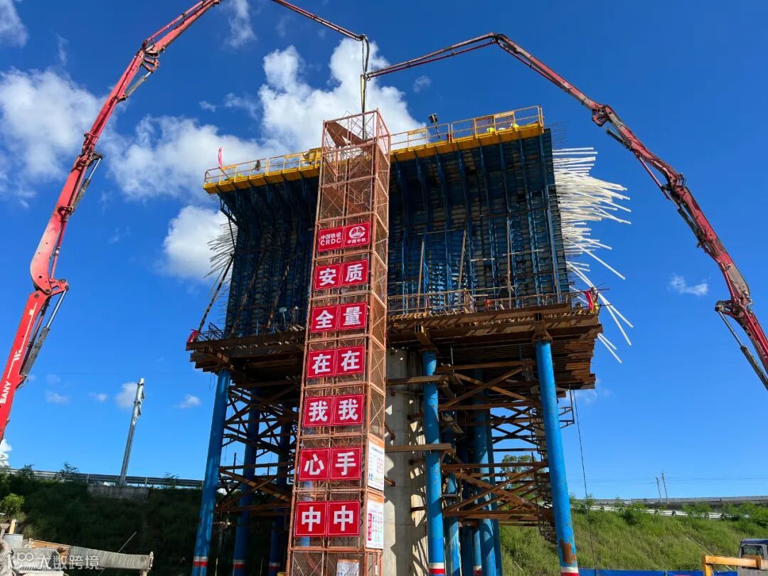 6月24日,广湛铁路七标长兴村特大桥跨沈海高速连续梁35#主墩0#块悬臂梁顺利完成砼浇筑。