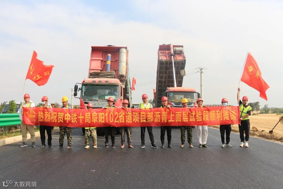 6月10日下午,阜阳102省道项目部完成1.5公里的沥青上面层试验段摊铺。