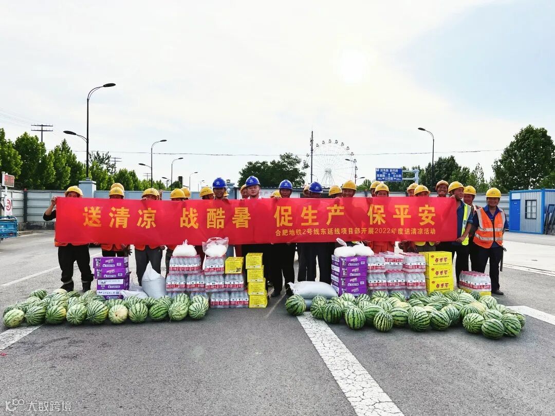 6月中下旬,公司各单位积极组织开展“送清凉”活动,为施工人员祛暑解热,图为合肥地铁2号线东延线“送清凉”活动。