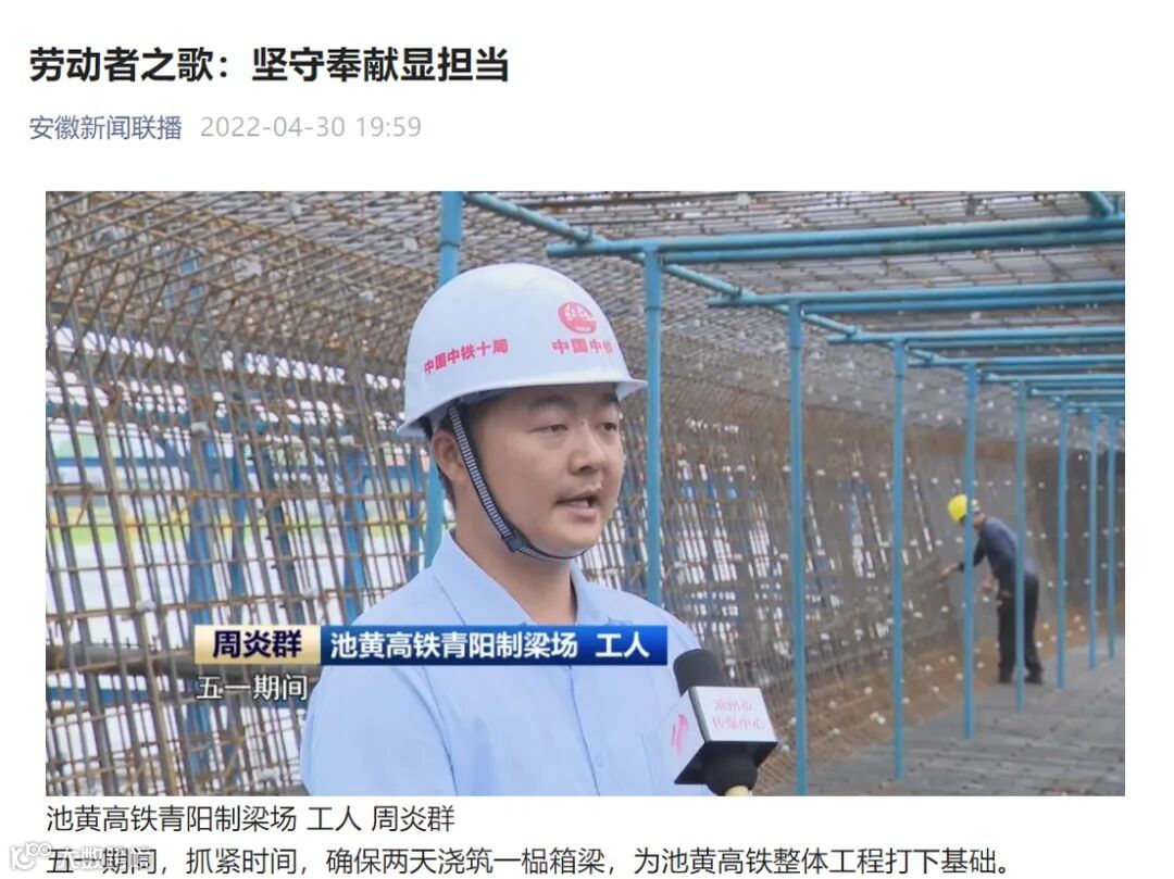4月30日,安徽新闻联播、池州新闻等媒体平台发布池黄铁路二标段“五一”施工筹备情况及生产动态。
