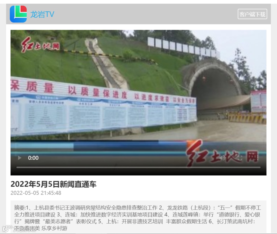 5月5日,龙岩市龙岩TV、闽西日报等媒体报道龙龙铁路一标段施工动态。