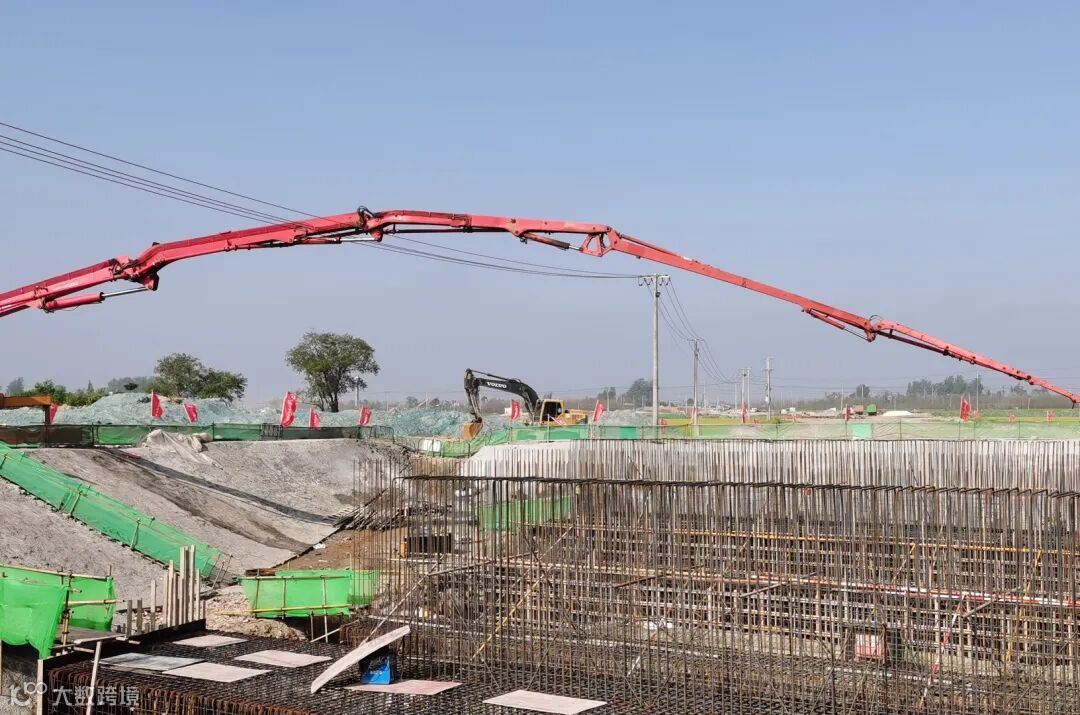 4月24日,合庐产业新城南外环路K2+766桥梁0#台和1#墩承台723.6立方混凝土顺利浇筑完成。