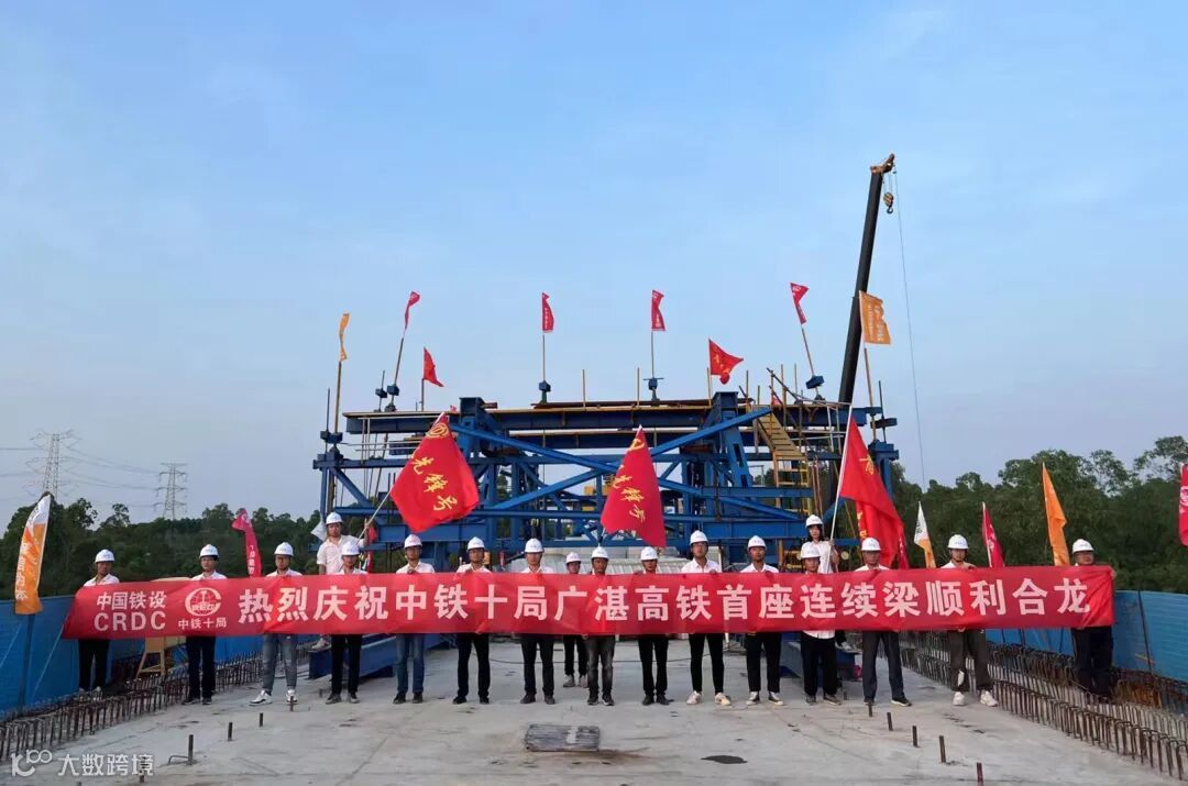 5月4日凌晨,广湛铁路元山岭特大桥跨马皇河(32+48+32)m连续梁顺利合龙。