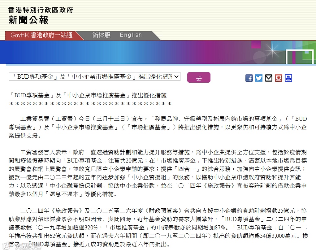 2025年3月13日,香港工业贸易署宣布对“发展品牌、升级转型及拓展内销市场专项基金”(BUD专项基金)及“中小企业市场推广基金”(EMF市场推广基金)进行重大调整,旨在以更聚焦和可持续的方式支援中小企业发展!