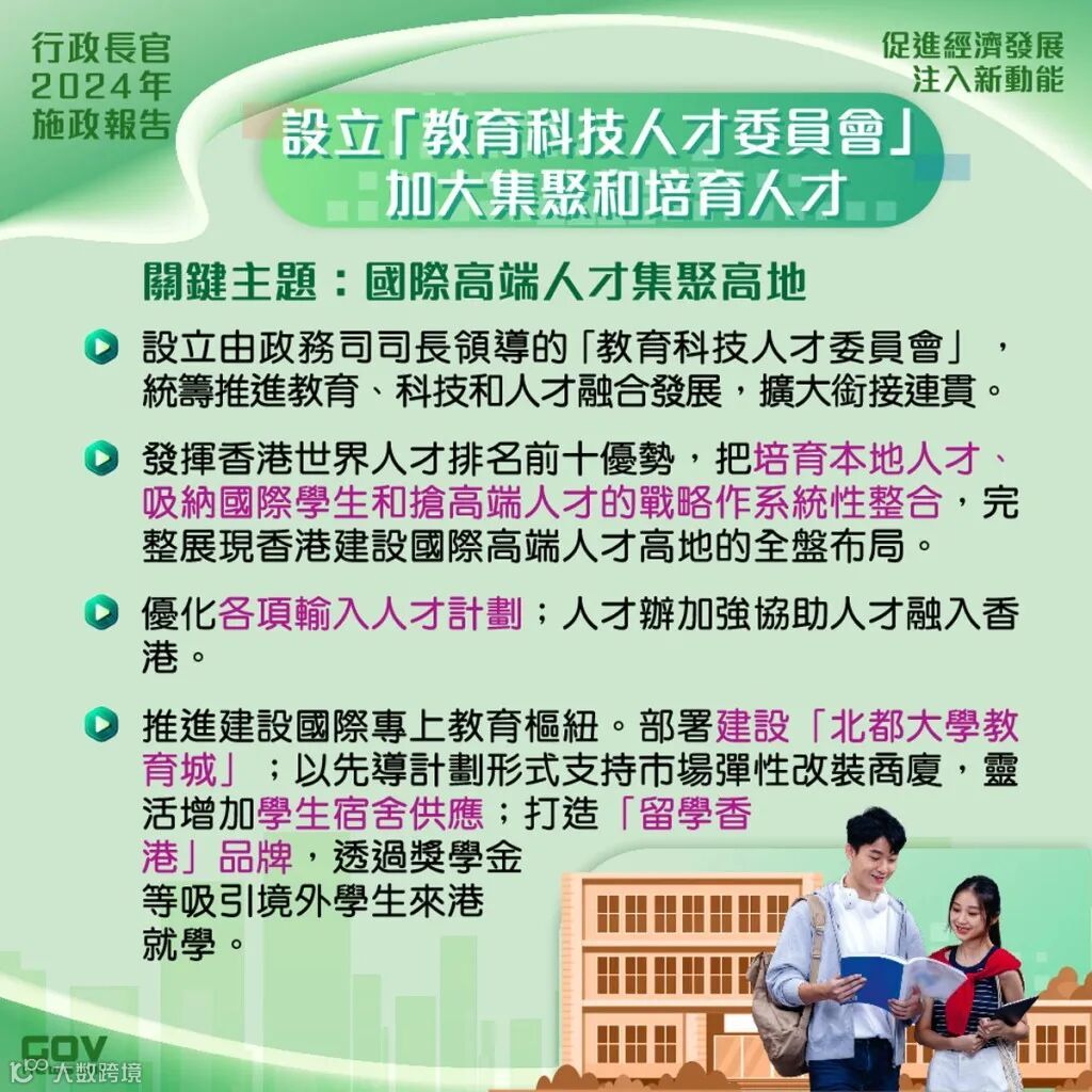1.港府计划更新「人才清单」,加入推动「八大中心」所需人才;