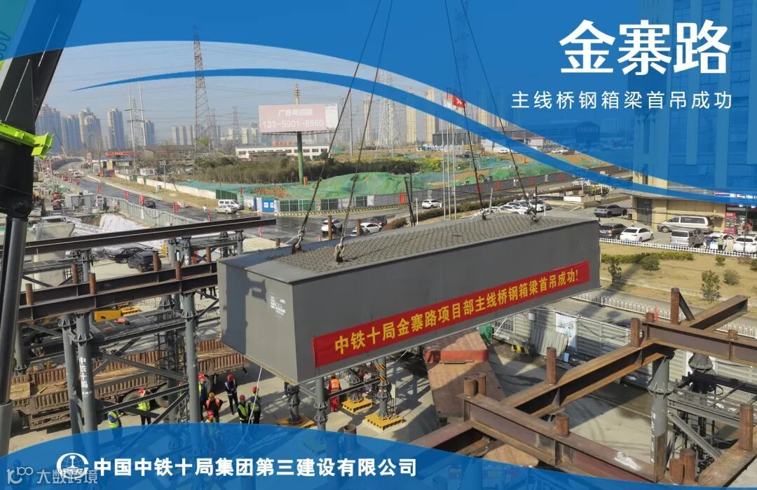 3月12日,金寨路项目主线桥首片钢箱梁成功吊装,标志着项目建设进入新阶段。