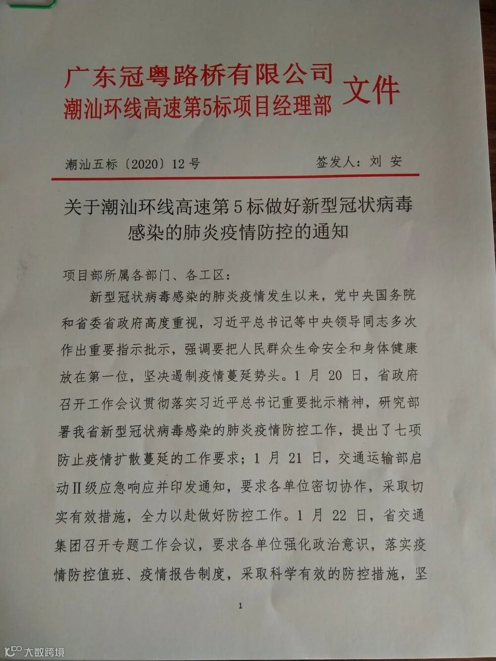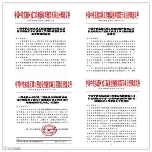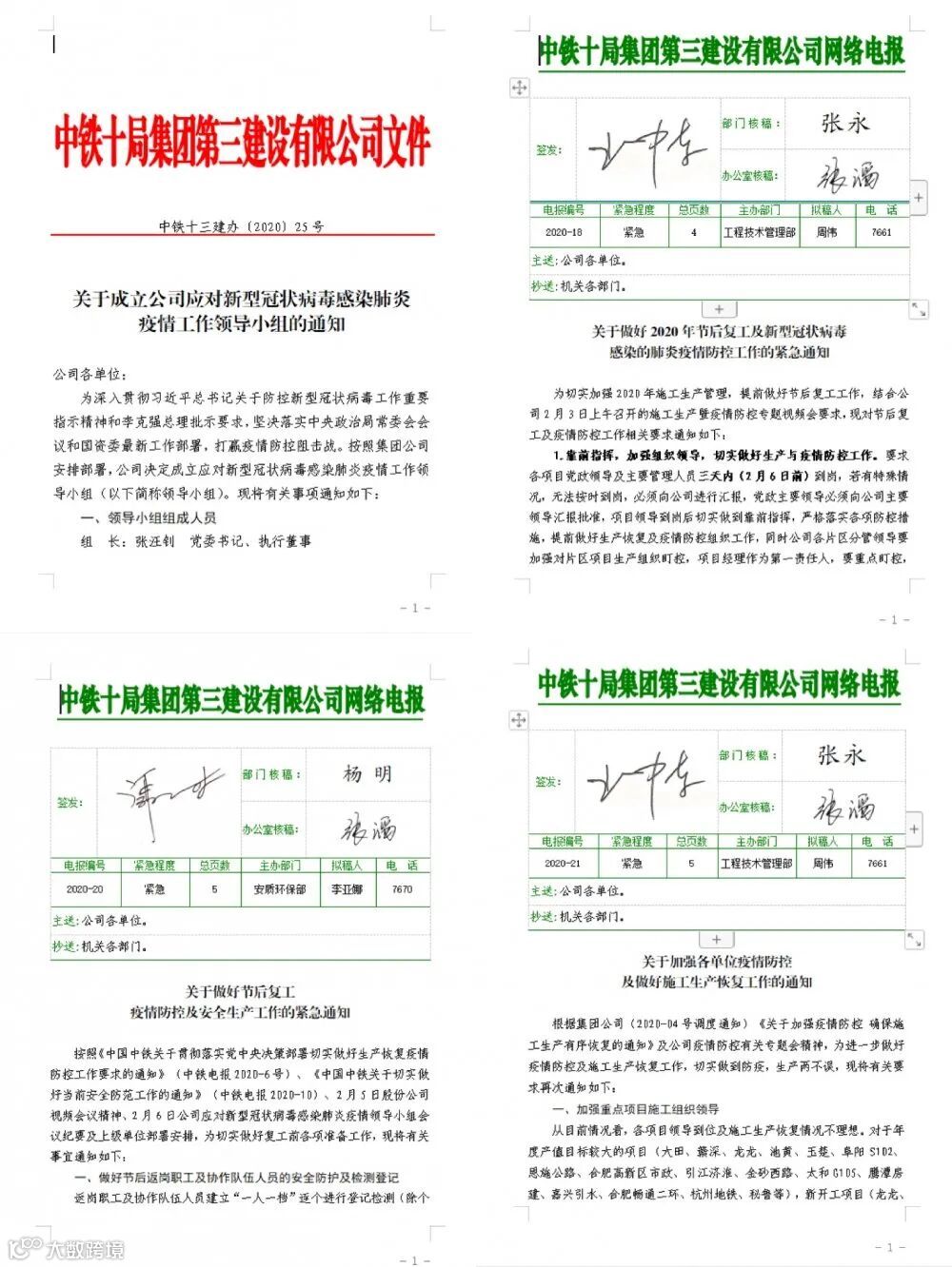 公司成立两级应对疫情防控领导小组、复工复产领导小组,明确小组分工内容,出台了《关于成立公司应对新型冠状病毒感染肺炎疫情工作领导小组的通知》、《关于做好2020年节后复工及新型冠状病毒感染的肺炎疫情防控工作的紧急通知》、《关于做好节后复工疫情防控及安全生产工作的紧急通知》、《关于加强各单位疫情防控及做好施工生产恢复工作的通知》等文件及通知。