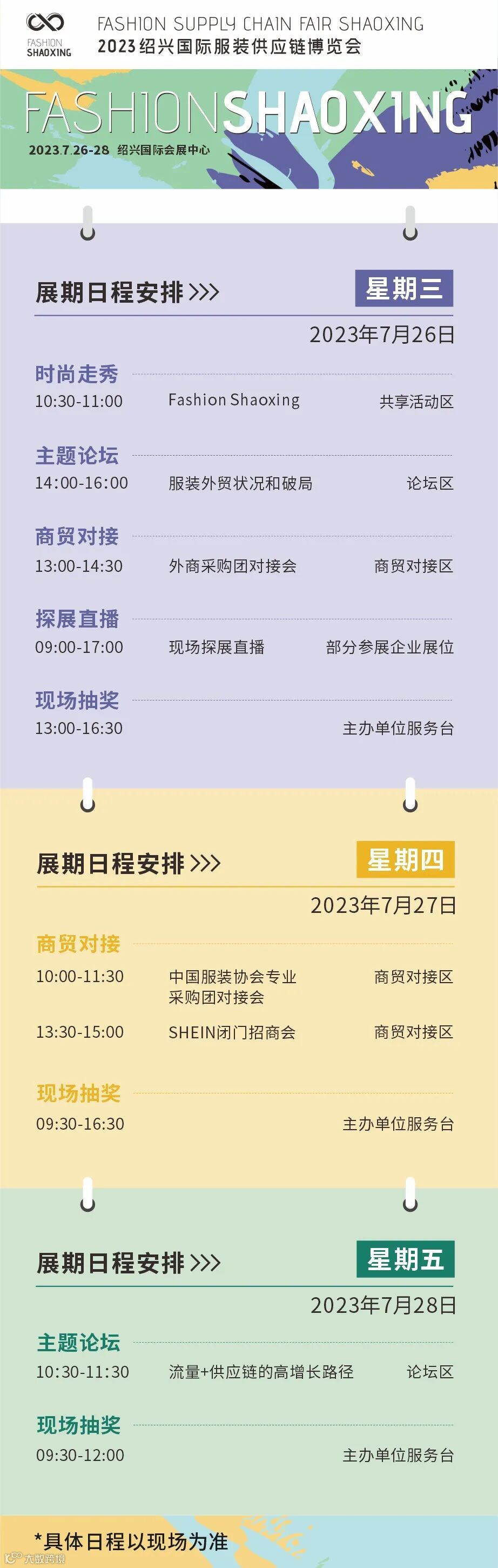 7月26日开展首日,一场精彩时尚大秀将闪亮登场,由TIMEOPEN、MISITIC、狩妖、圣昌荣、雅卓等品牌带来的Fashion Shaoxing时尚发布秀,呈现出设计师的多元化及创造力,为观众献上别具一格的时尚潮流体验。