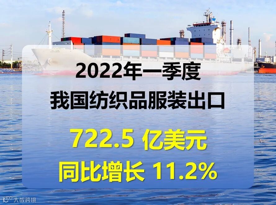 今年一季度,我国货物贸易进出口总额9.42万亿元,同比增长10.7%(以美元计同比增长7.5%),实现平稳开局。其中,纺织行业对外贸易持续增长。据海关总署今日统计快讯,2022年一季度,我国纺织品服装出口722.5亿美元,同比增长11.2%(以人民币计同比增长8.8%)。其中,纺织品出口365.7亿美元,同比增长15.1%(以人民币计同比增长12.6%);服装出口356.8亿美元,同比增长7.4%(以人民币计同比增长5.2%)。