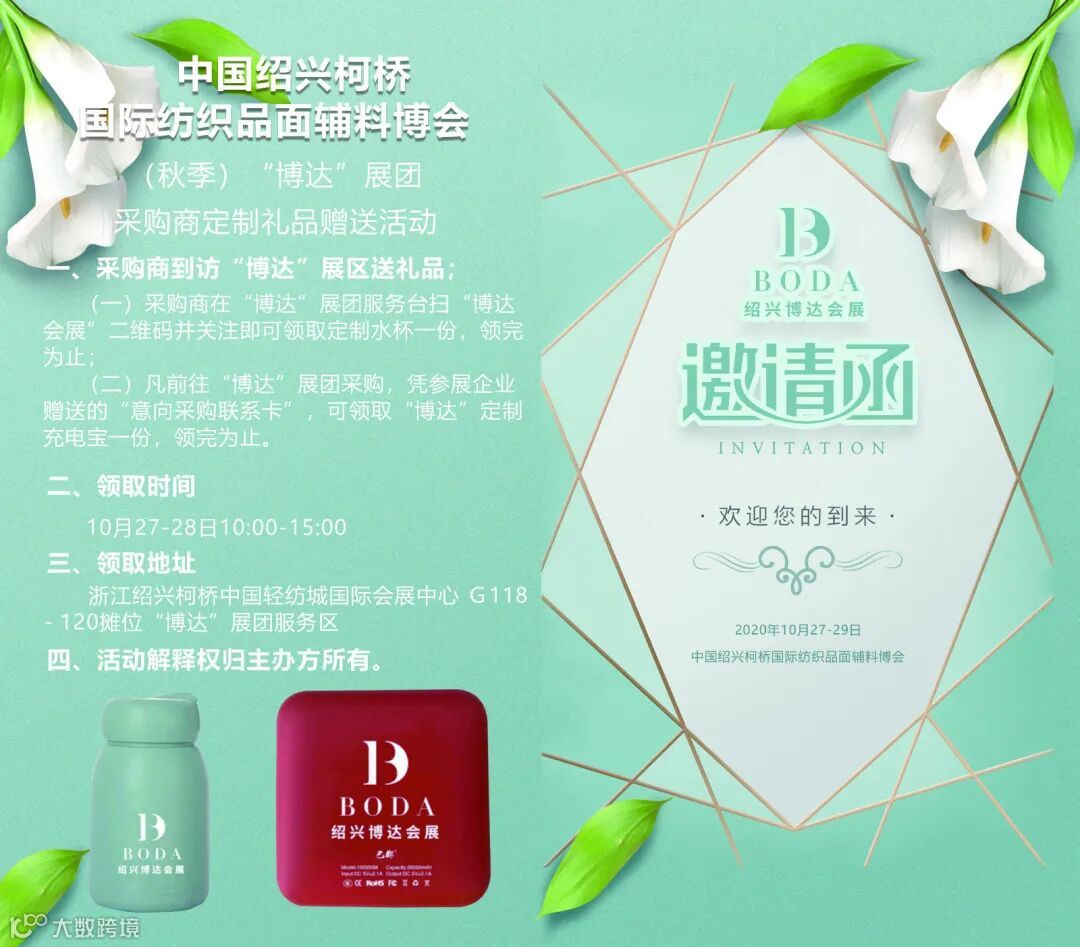 ②凡前往“博达”展团采购,凭参展企业赠送的“意向采购联系卡”,可领取“博达”定制充电宝一份,领完为止。