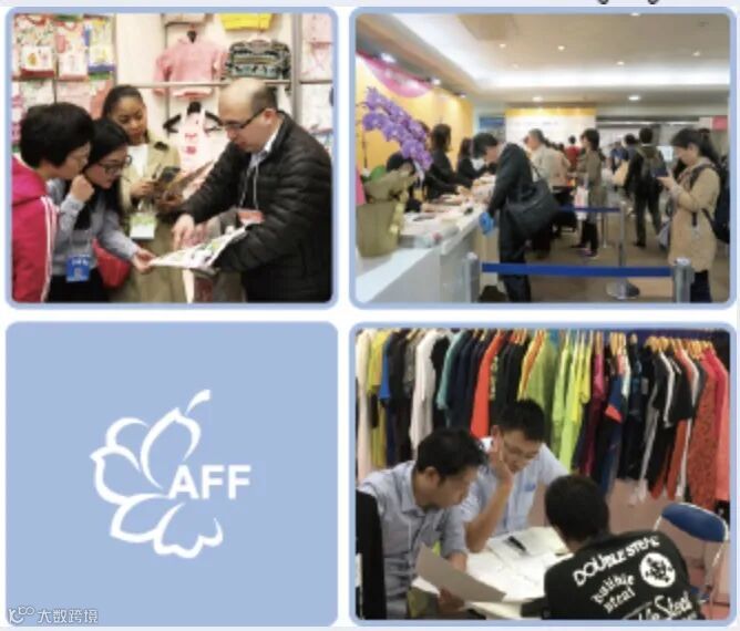 AFF(Asia Fashion Fair)自2003年创办以来,已成功举办过32届,每年两届,春季在大阪、秋季在东京。AFF是日本最大规模的纺织服装OEM・ODM展会,展品范围包括服装、面料、辅料、家纺、服饰等。近年来“中国+1”模式从概念走向现实,由亚洲各生产基地提供的纺织服装供应日益为日本进口商所重视,中国企业顺应这种趋势,很多企业在东南亚各国设立工厂,产品供应从中国扩展到亚洲各国。展会已经积累了40,000份核心客户,他们依次来自商社、制造、批发、零售等企业,买家认为展会在其业务重要性方面的认可率超过70%。