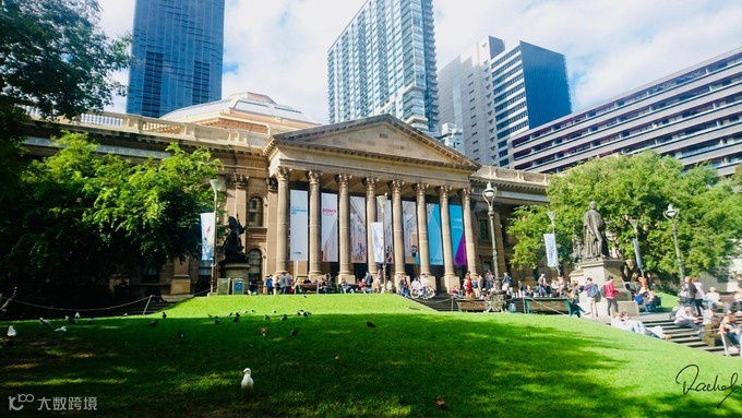 如果说让我推荐 墨尔本 必去的话,州立图书馆必定是我榜上前三。这是一个无论里面还是外面都美的不像话的地方,外观上是一个非常 希腊 的很多门柱子的大白楼,很长的台阶大块的绿色草坪,阳光好的时候可能点缀着很多的外国人或野餐或看书,也不乏街头艺人在这歌唱。图书馆门口经常是众多集会的聚集地,有时候会看到他们成群的聚集在这里高声的呼吁着他们所坚持的事情。图书馆里面,最知名的是La Trobe阅览室,抬头可以看到穹顶,柔和的光线和阅览室里古朴的棕红色的阅读桌椅,配上复古的绿色灯罩,颇有感觉。电梯上去可以参观一个小型的展览,大约就是一些历史和收藏,可以通过楼梯走到这个图书馆的最高层然后俯拍到下面发散型的书桌摆放。但毕竟是图书馆,参观归参观,能安静点还是安静点 。