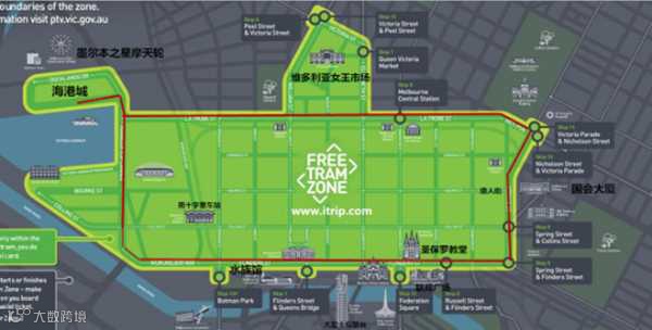 墨尔本CBD有一个知名的怀旧免费有轨电车:35路免费城市环路电车(Free City Circle Tram( No.35))。35路免费电车每周日至周三 10:00—18:00,周四至周六 10:00—21:00时间段运营,共计13站,12分钟一班,基本上涵盖了墨尔本市区的主要景点。花上一天的时间,乘坐35路免费城市环路电车随上随下,即可游览墨尔本CBD地区的主要景点(弗林德斯街火车站、圣保罗大教堂、联邦广场、涂鸦街、财政部花园、国会大厦、卡尔顿花园(墨尔本博物馆和皇家展览馆)、墨尔本旧监狱、维多利亚国家图书馆、旗杆花园、新码头、维多利亚警察博物馆、墨尔本水族馆、南岸、尤里卡天台88层、NGV国际(美术馆)、维多利亚艺术中心等)。
