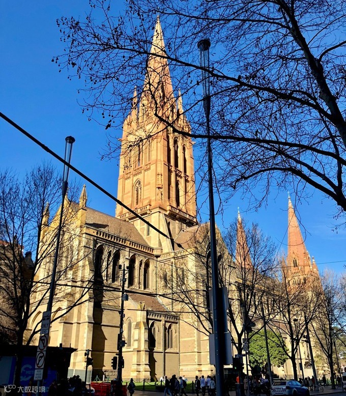 又是一个南北球之最,最大的教堂。免费开放,但是不能在里面随意拍照,需要付费获得牌照许可才可以拍。里面的彩绘玻璃,瓷砖,管风琴等等装饰都非常的漂亮,是典型的西方哥特教堂。站在教堂的路口其实可以看到对面弗林德斯火车站的整个建筑,这个位置应该是可以拍出最墨尔本的一个角度来。