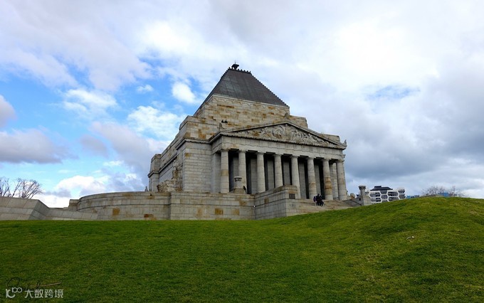 一个非常巨大的公园,大多数人就是来着锻炼跑步健身的,绿化面积很大,夏天乘凉不错。边上有一个战争纪念馆,在每年ANZAC纪念日的时候,人们都会从四面八方到这里来纪念。一个非常高大的白色大理石建筑,希腊风格,非常的宏伟。所有的浮雕、雕塑都在叙述着战争的故事和得来不易。中心有一个金字塔形的穹顶,上面有一个镂空的小窗,特定时间阳光可以直射照亮下方的纪念碑作为一个特殊的仪式来纪念战争的结束。去到高处可以俯瞰到墨尔本市中心