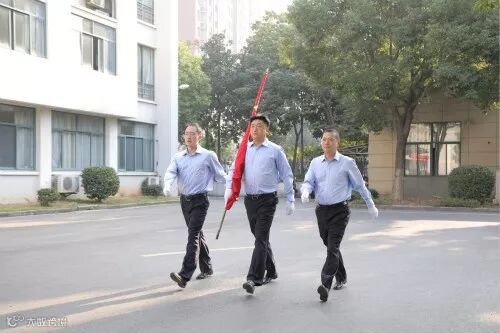 国旗护卫队英姿飒爽,整齐划一,迈着铿锵有力的步伐护送国旗来到升旗台。伴随着雄壮的《义勇军进行曲》,鲜艳的五星红旗冉冉升起,迎风飘扬。全体员工庄严肃立行注目礼,向国旗致敬,衷心表达对祖国的深情热爱和美好祝福。