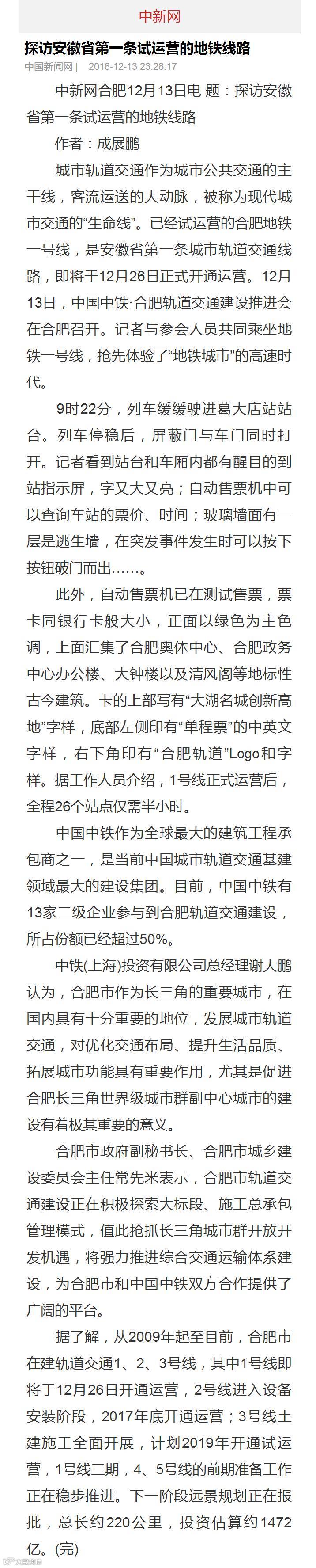 安徽省首条地铁——合肥市轨道交通1号线就要开通啦!
