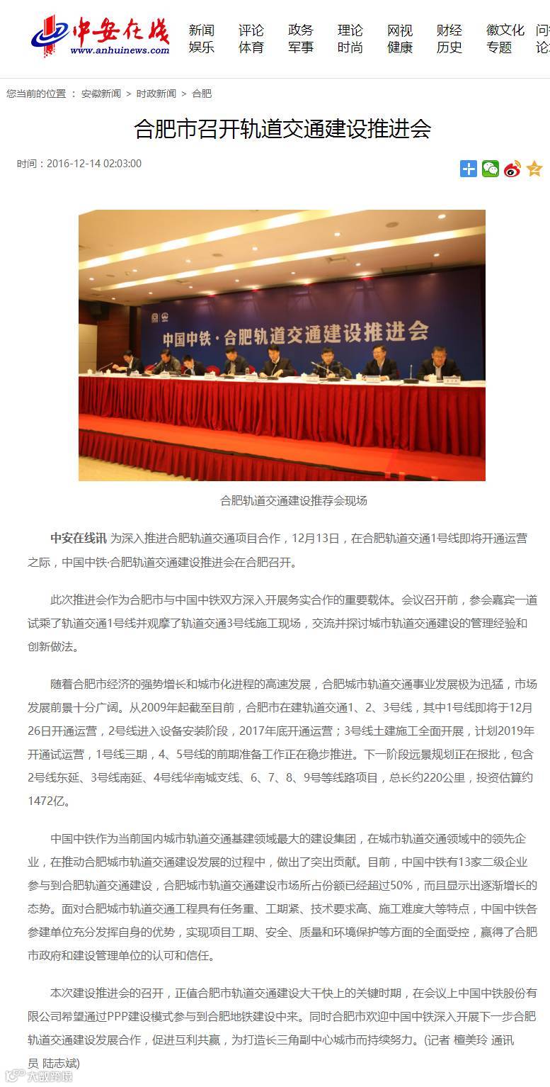 下午,中国中铁·合肥轨道交通建设推进会也格外引人关注!