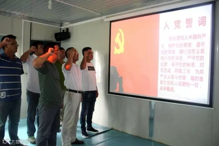 ▲阿尔及利亚保障房党支部组织党员重温入党誓词