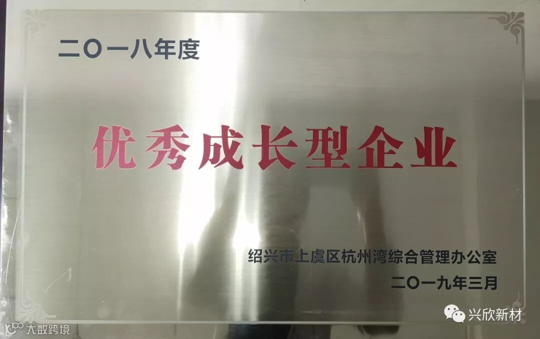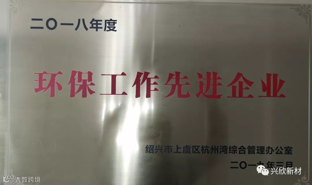 2019年3月22日,绍兴兴欣新材料股份有限公司荣获上虞区杭州湾综合管理办公室颁发的2018年度“优秀成长型企业”及“环保工作先进企业”称号。近期,兴欣新材也荣获了2018年度“绍兴市尘毒危害治理示范企业”的殊荣。各类荣誉的取得是上级部门对兴欣新材经营发展的肯定,是公司经营层牢固树立“保障安全环保,实现持续发展”的经营方针的见证,更是公司全体员工共同努力的成果。