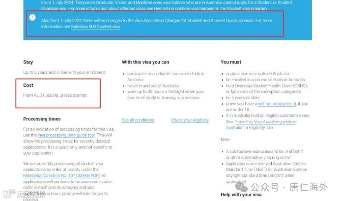 【注意】如果是第二次申请500学签/590陪读签证,在基础申请费上再额外加700澳元。