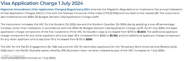 自 2024 年 7 月 1 日起,500学签主申/副申和590陪读签证申请费涨价情况如下: