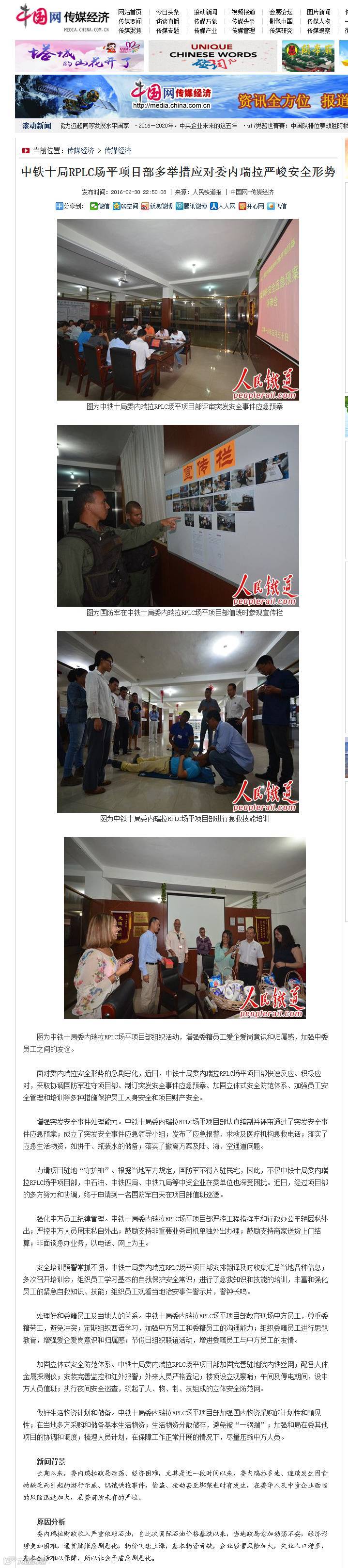 【媒体之声】中国网:中铁十局RPLC场平项目部多措并举应对委内瑞拉严峻安全形势