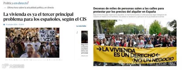 其中,关于住房危机新闻众多,10月份西班牙各地爆发多场抗议房租、房价太高的游行,给政府施加压力。马德里爆发万人抗租大示威,要求住房部长下台,关闭所有民宿来增加长租房源供给。