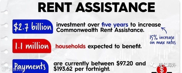 目前使用联邦租金援助的租户将看到最高利率增加 15%,预算成本为 27 亿澳元。实际上,这相当于租金援助金每两周增加约 31 澳元,预计将帮助约 110 万户家庭。