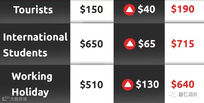 从2023年7月1日起签证申请费至少提高6%,部分访客和临时签证类别的申请费提高15%,商业创新和投资签证的申请费增幅则高达40%。据估计,这项措施将让政府在五年内收入6.65亿澳元。