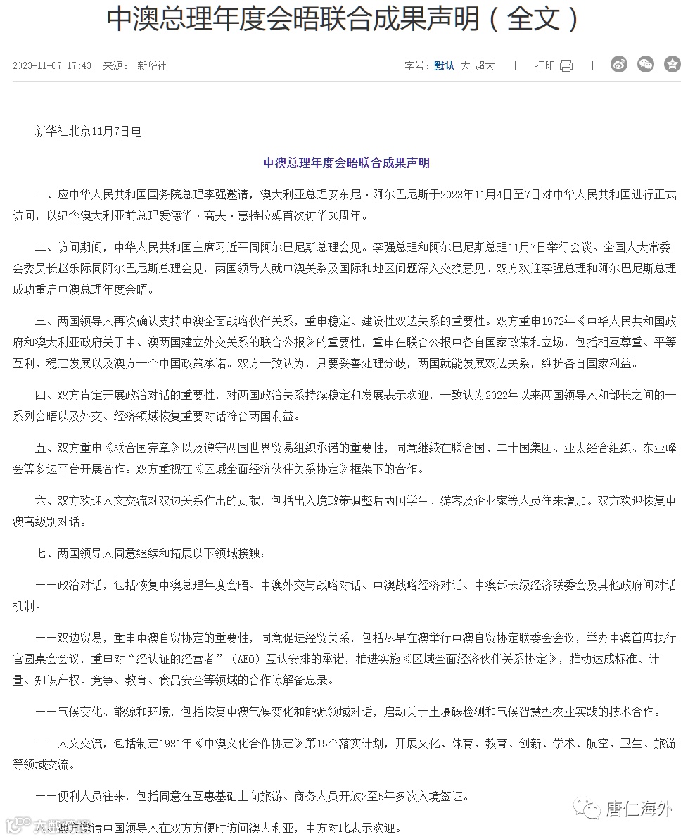 澳总理访华收获满满,中澳两国领导人再次确认支持全面战略伙伴关系
