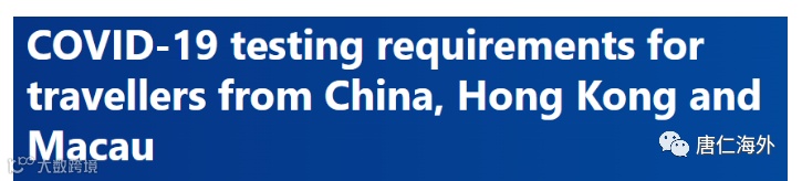从2023年1月5日(星期四)上午12:01开始,从中国(包括香港和澳门)抵澳的旅客须在既定出发前48小时内接COVID-19检测,并在入境时出示阴性检测结果的证据。