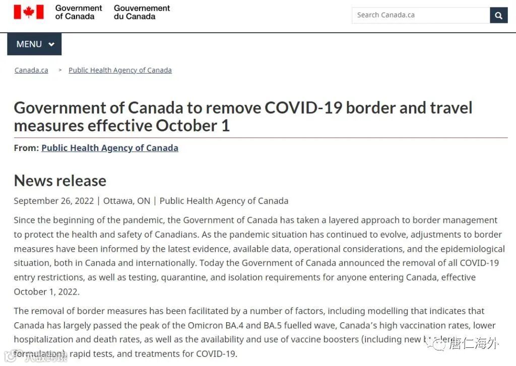 加拿大政府也官宣了!10月1日起取消所有COVID-19入境限制!