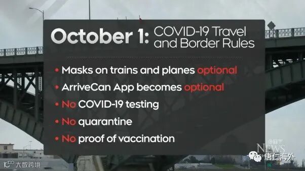 从2022年10月1日起,取消所有新冠肺炎入境限制,以及对任何进入加拿大的人的检测、检疫和隔离要求